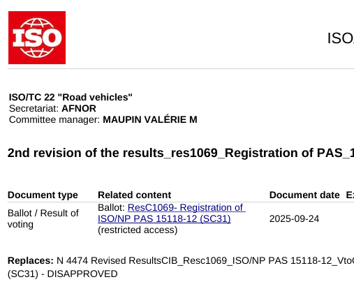 韓 EV충전 표준 ‘K-VAS’, 국제표준 가능성 열렸다 기사 원문 : https://www.electimes.com/news/articleView.html?idxno=360790 ISO 도로차량 위원회로부터 NP 등록 승인 통보 스페인·우간다 전문가 추가로 6개국 참여 요건 충족 배터리 정보 실시간 교환 프로토콜…화재 예방 기여 기대 2026년 12월 PAS 발간 목표…배터리 화재 예방 국제표준 주도 한국이 주도하는 전기차 배터리 안전 표준이 본격적으로 [...]